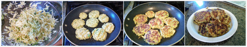 There was a recent Zucchini Pancakes recipe in the Union Tribune. I thought it sounded good, but I figured I might be able to make it simpler with more basic ingredients.